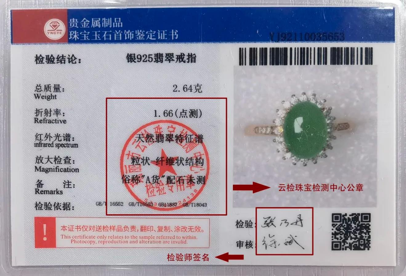 B体育珠宝玉石首饰鉴定证书背面有单位公章和检验师签名